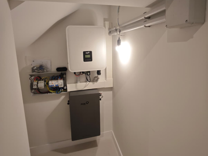El conjunto está compuesto por módulos solares de alta eficiencia con una potencia total de 5,31 kWp, un inversor de 8 kW nominales y un sistema de almacenamiento mediante baterías de litio de 5,18 kWh. Esta combinación permite aprovechar al máximo la energía generada durante el día y utilizarla posteriormente en horas sin radiación solar.